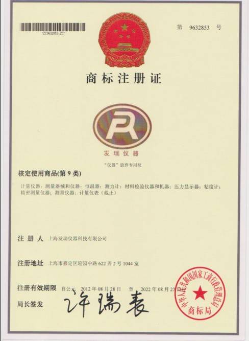 熱烈祝賀高低溫試驗箱,恒溫恒濕試驗箱上海發(fā)瑞儀器公司商標(biāo)注冊成功